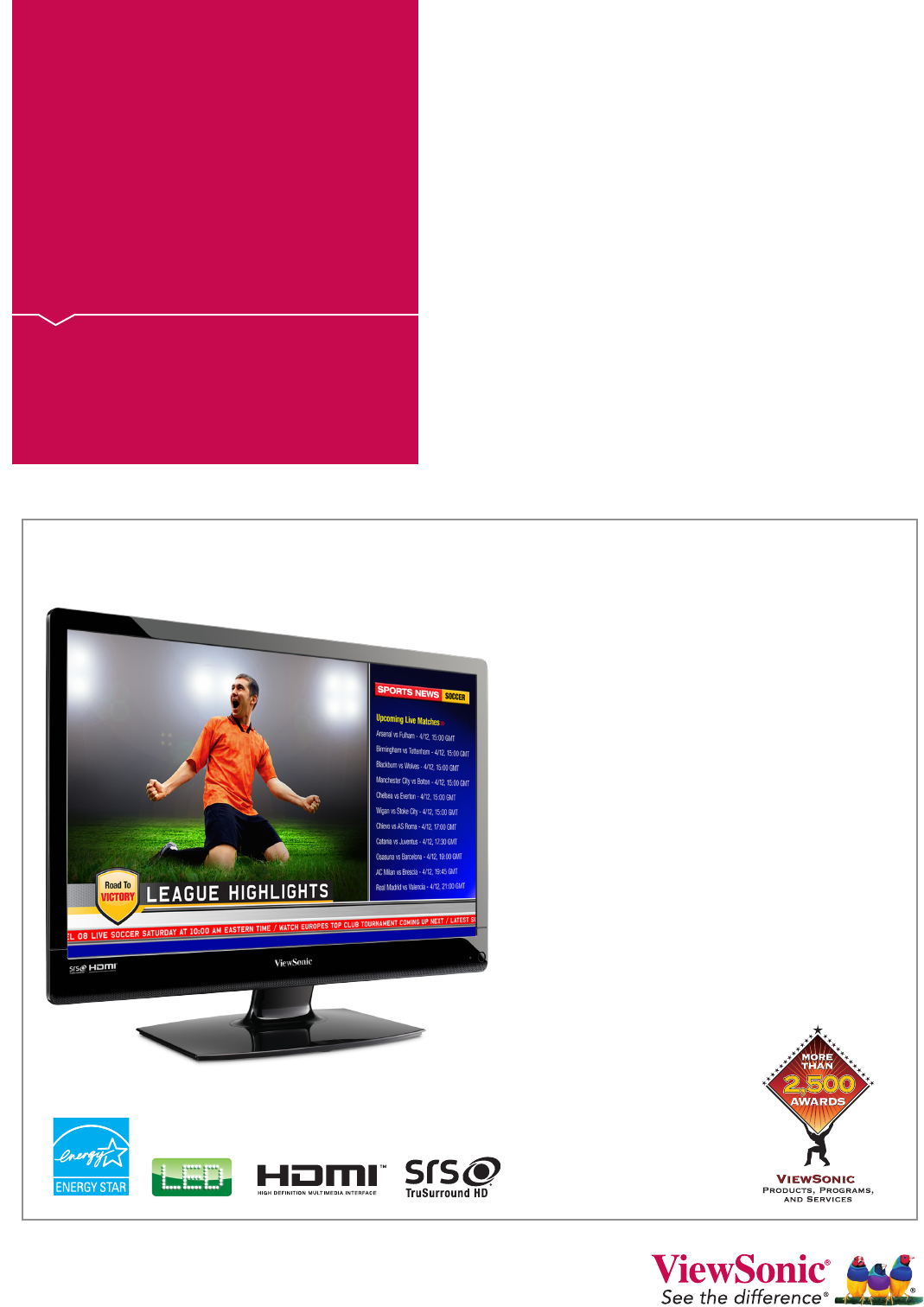 23.6"edge-lit HD panel uses less energy while producing vivid